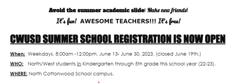 CWUSD Summer School registration is now open!! See below for details!
