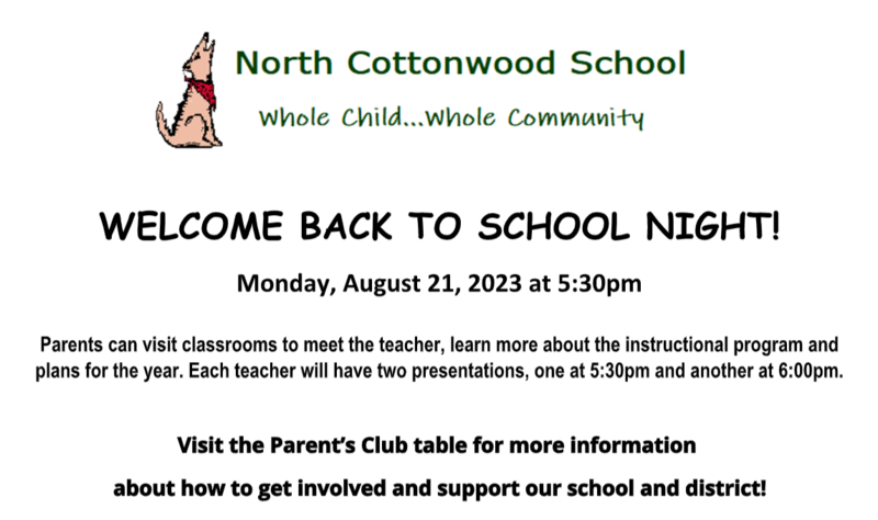 Back to School Night is Monday, August 21st at 5:30 pm and 6:00 pm. See below for more info!
