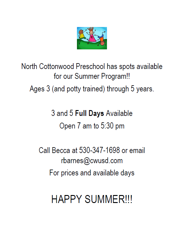 North Cottonwood Preschool has spots available!! See below for more info!