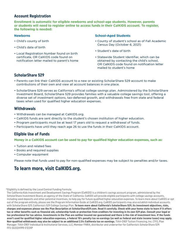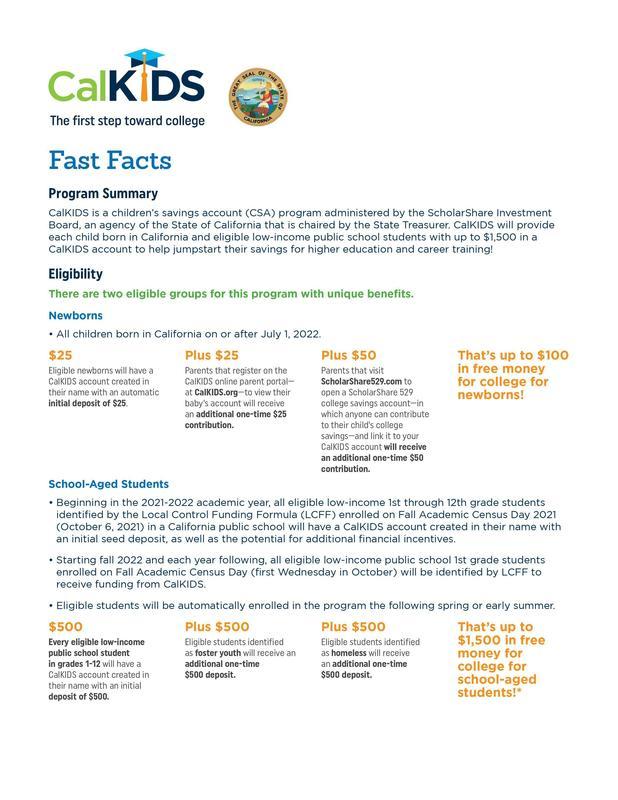 Please see the flyer below for a great savings opportunity through the CalKids Program!